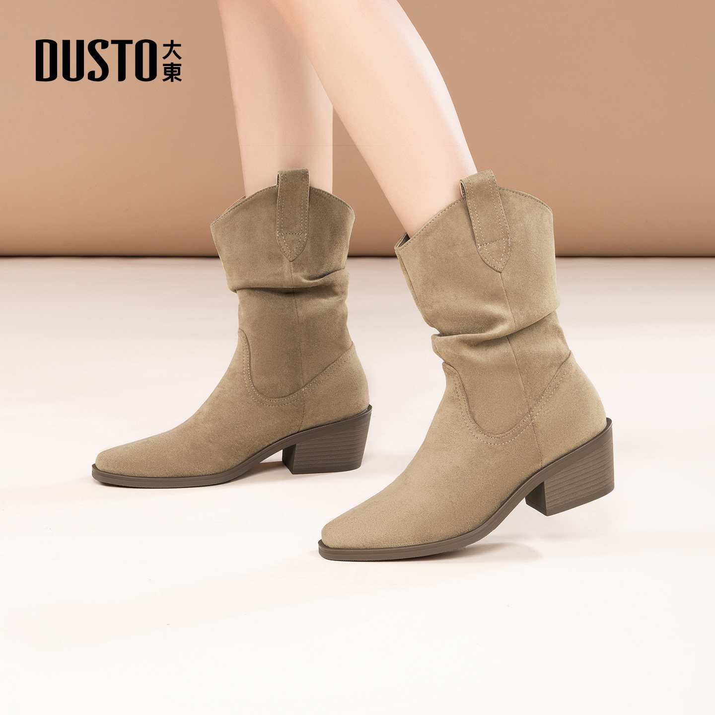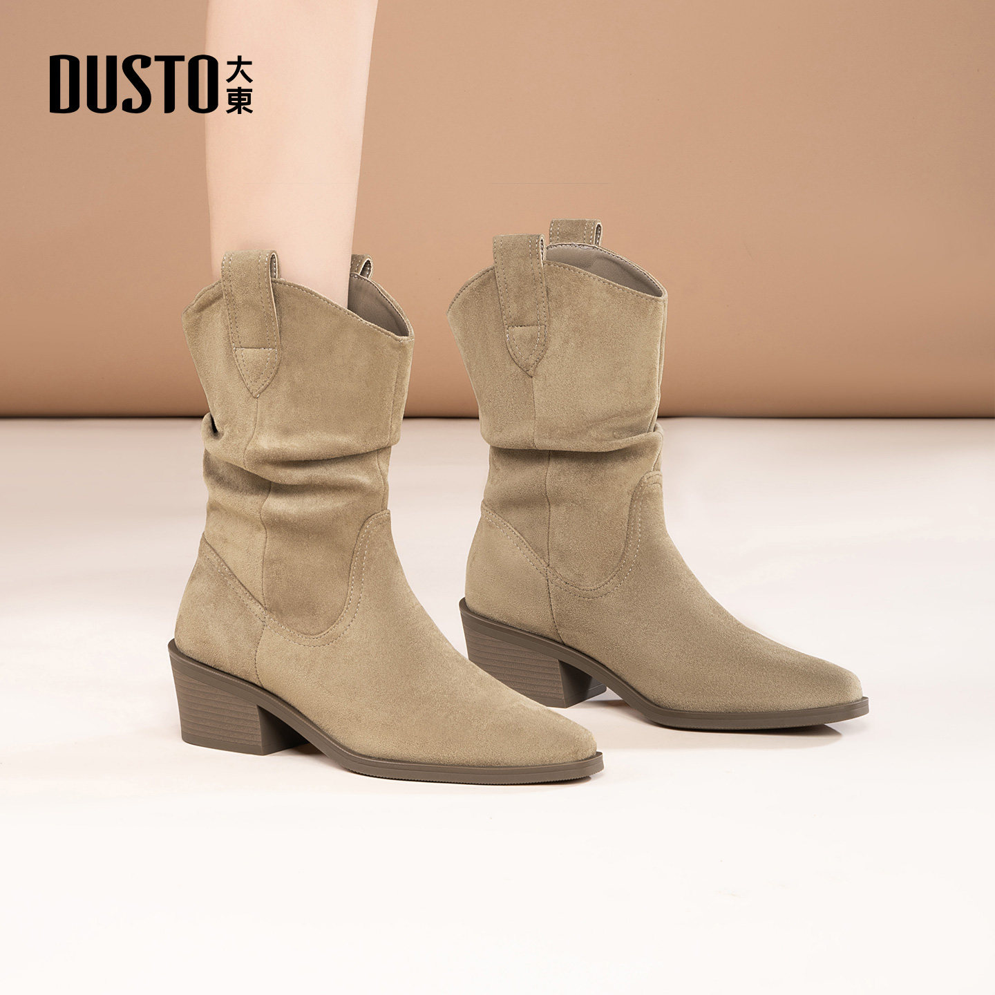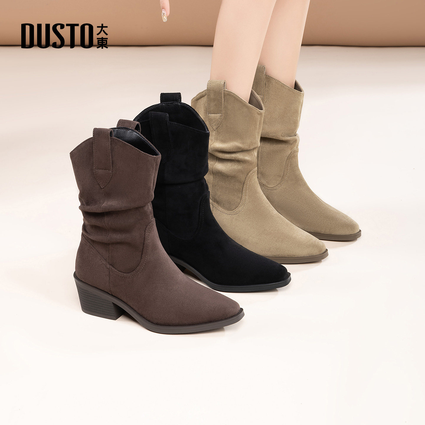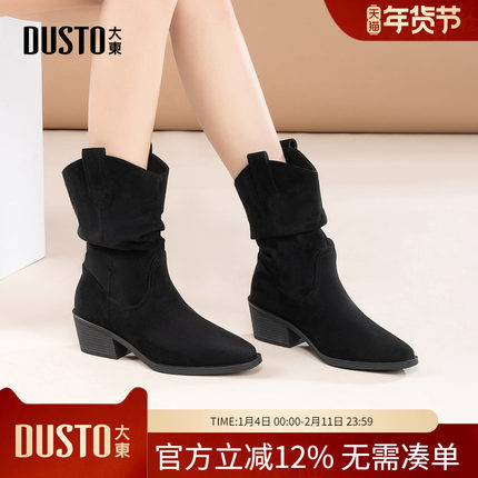大东dd堆堆短靴女2025新款冬季瘦瘦靴切尔西靴粗跟尖头马丁靴女靴