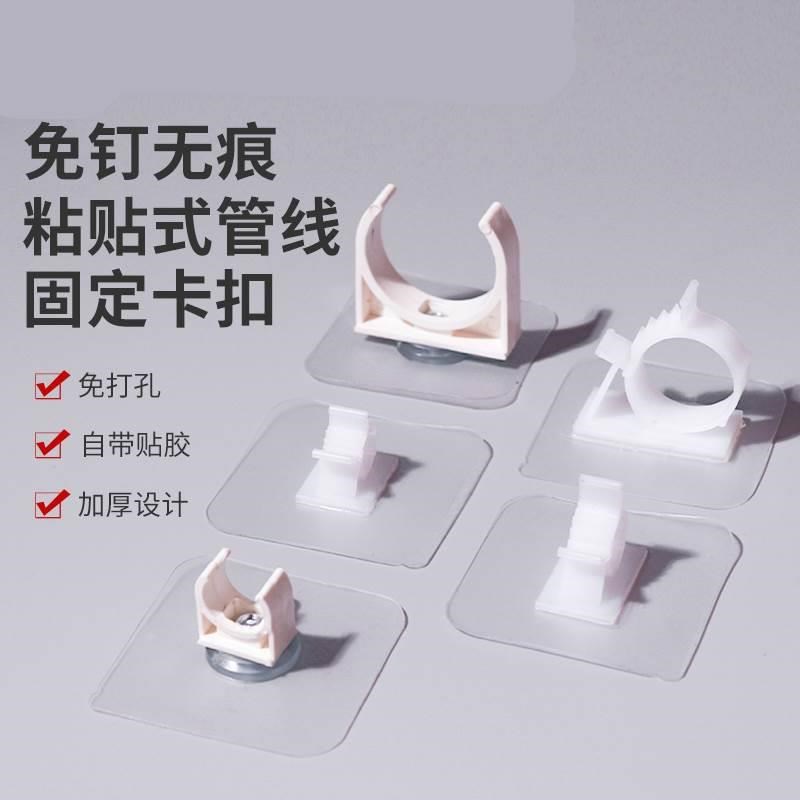 管卡固定pvc置物架波q纹空调圆免钉墙壁神器ppr打孔水管夹子扣