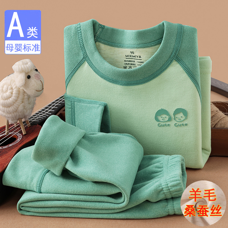 秋冬羊毛蚕丝儿童保暖内衣套装无骨男童女童加绒加厚打底衫家居服