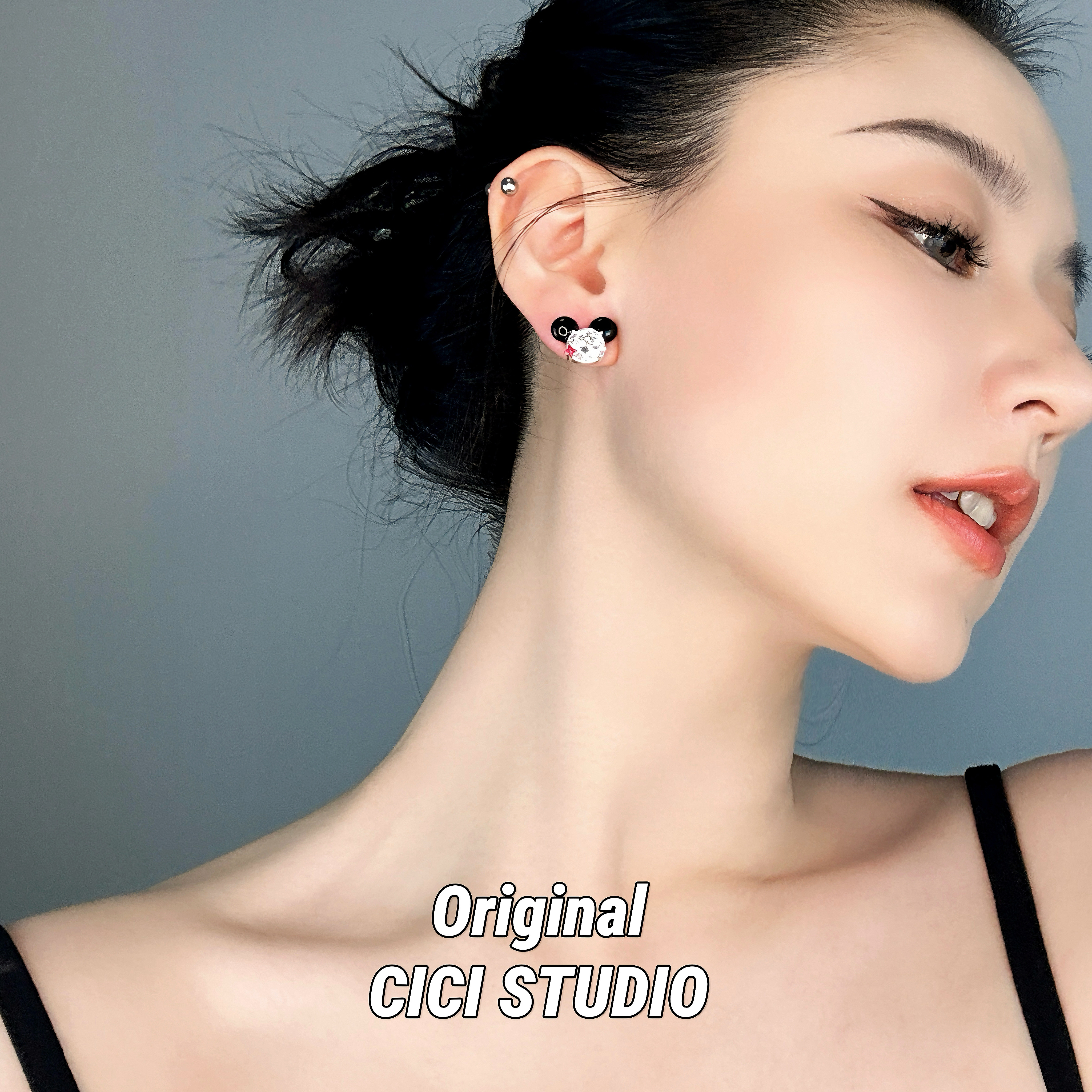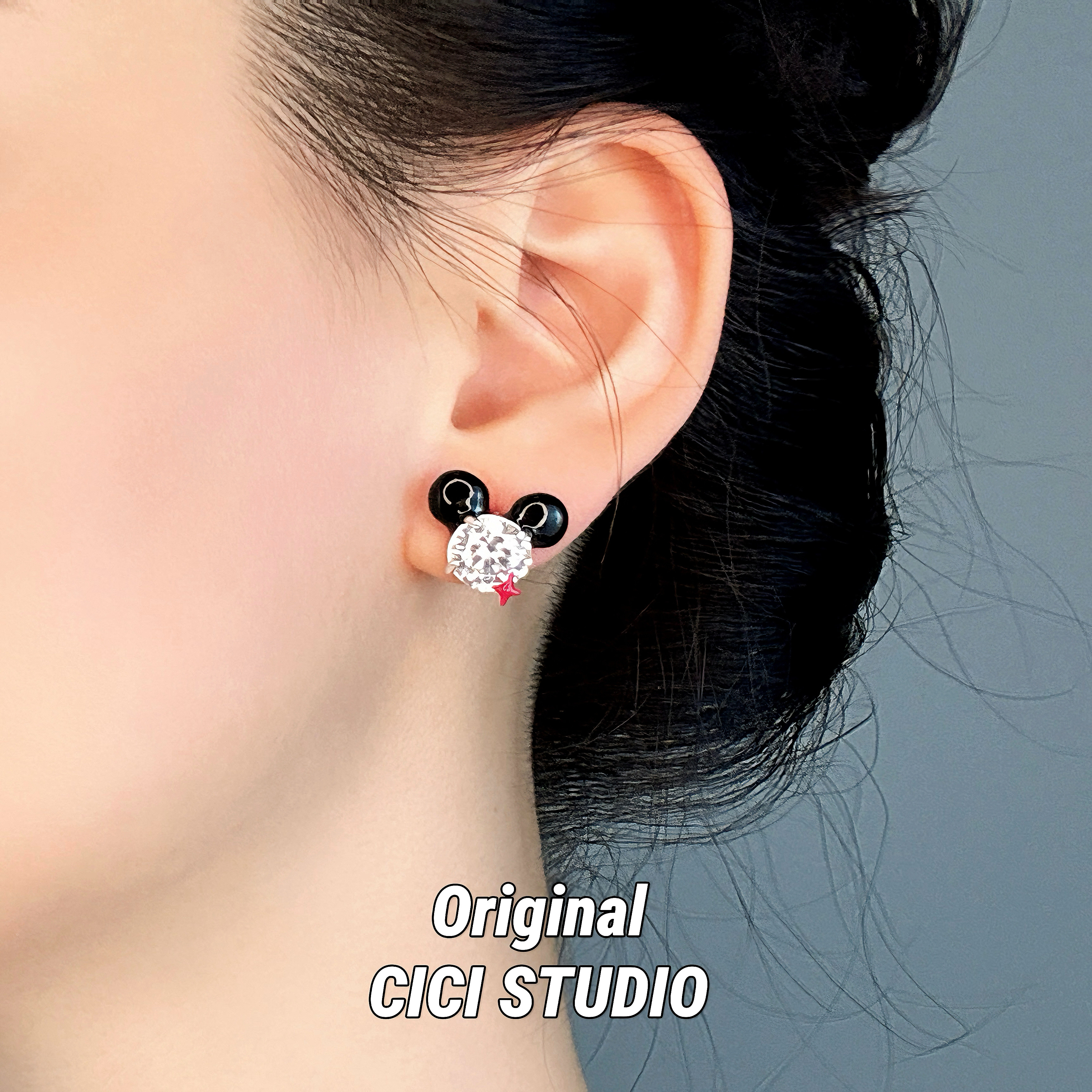 CICI STUDIO小众个性锆石米奇迪士尼耳钉女ins精工轻奢耳饰礼物