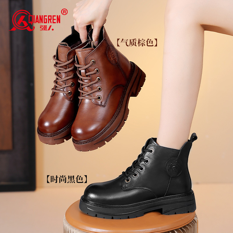 3515强人新款女靴冬季保暖马丁靴英伦短靴加绒加厚防寒靴子雪地靴