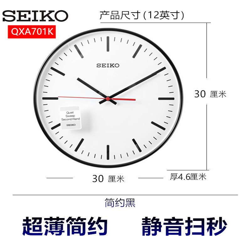 SEIKO正品日本精工钟表静音挂钟壁钟12寸卧室客厅简约北欧QXA701