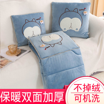 多功能加厚加绒抱枕被子两用折叠汽车内靠枕办公室保暖午睡空调毯