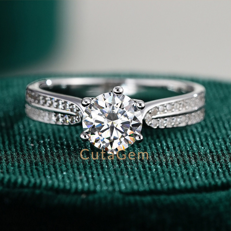 经典款正品D色莫桑石钻戒1克拉纯银情侣对戒男女一对求婚结婚戒指