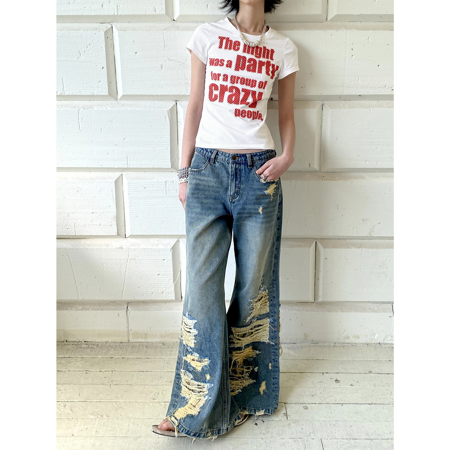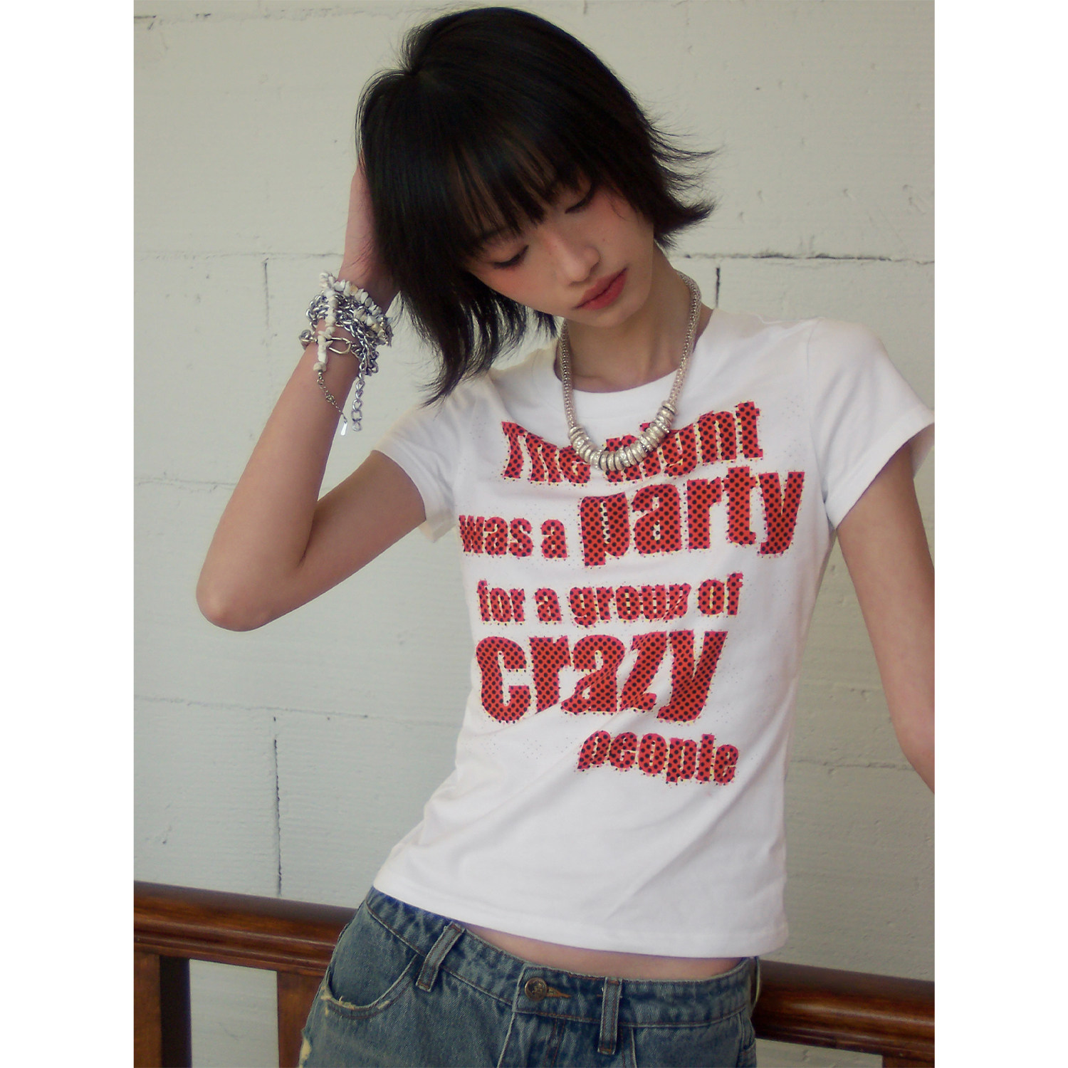 化学少女「菠萝海岸」crazy波点字母印花短袖T恤女夏显瘦ins上衣