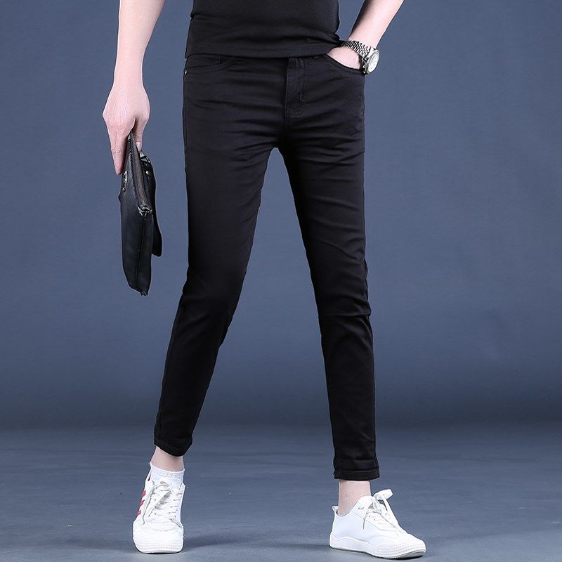 九分裤男士牛仔裤夏款潮流修身小脚纯黑色9分休闲裤潮牌薄款男裤