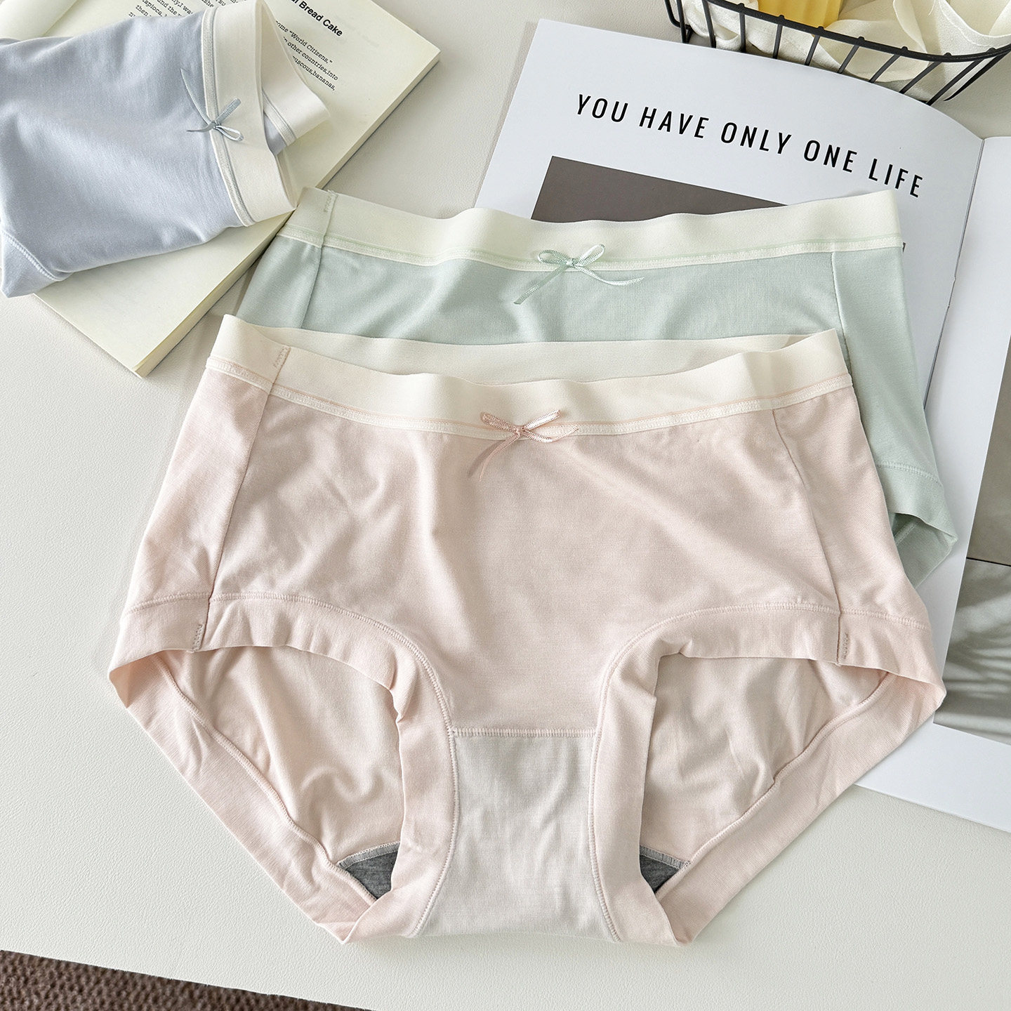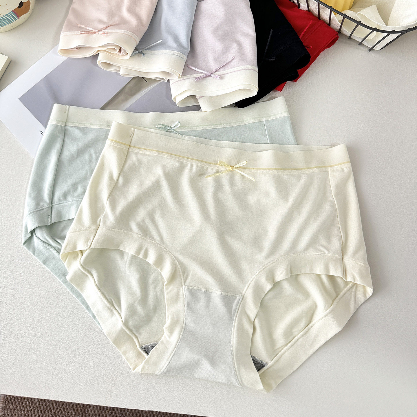 彩田莫代尔女士内裤中高腰2025新款少女纯色短裤无痕裸感柔软抗菌
