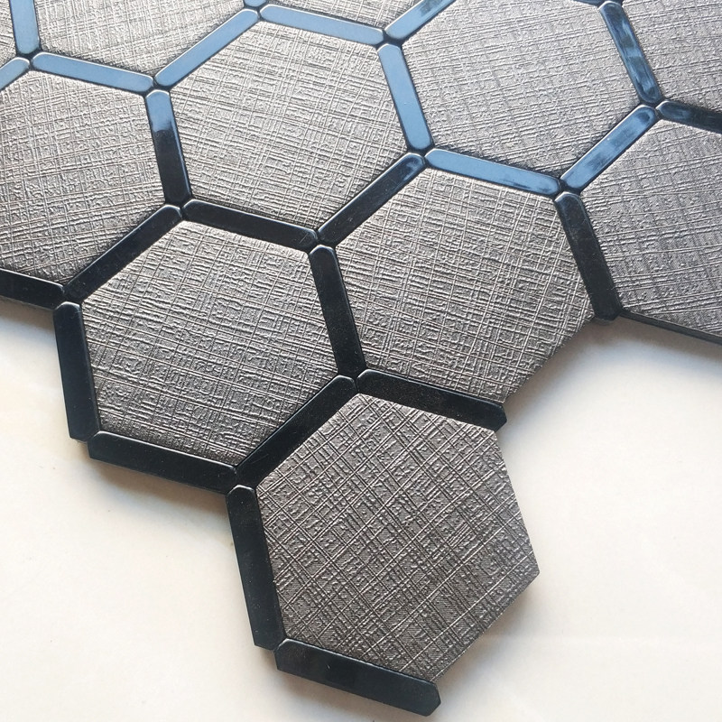 简约六角马赛克墙贴自粘铝塑板卫生间厨房背景装饰旧房翻新瓷砖灰