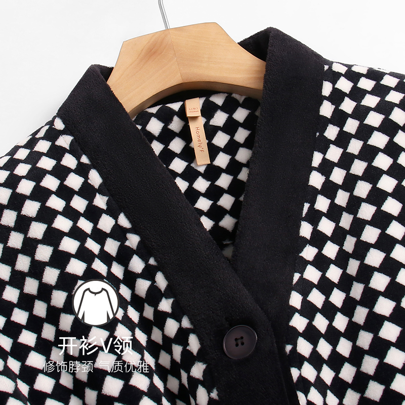 海岛绒睡衣女睡袍长款秋冬款冬季法兰绒加绒加厚珊瑚绒家居服套装