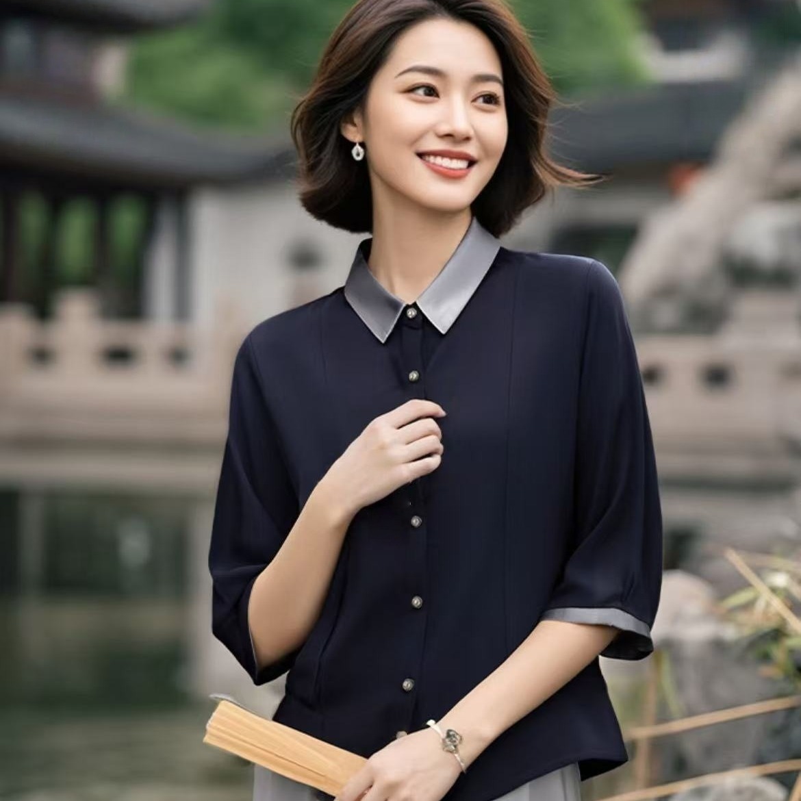 素雅订制女装原创品牌秋季新款气质纯色撞色上衣高腰阔腿裤两件套