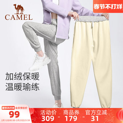 骆驼女装秋冬卫裤休闲长裤加绒加厚运动裤女宽松瑜伽裤束脚裤男