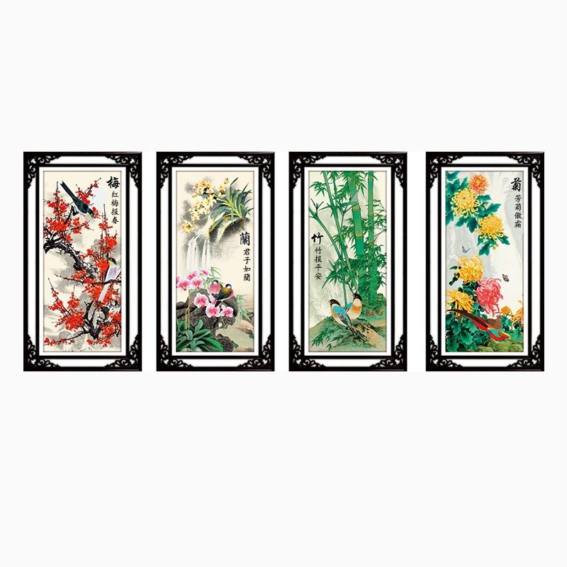 5d梅兰竹菊钻石绣满钻四君子竖粘贴点钻十字绣2026新款客厅砖石画