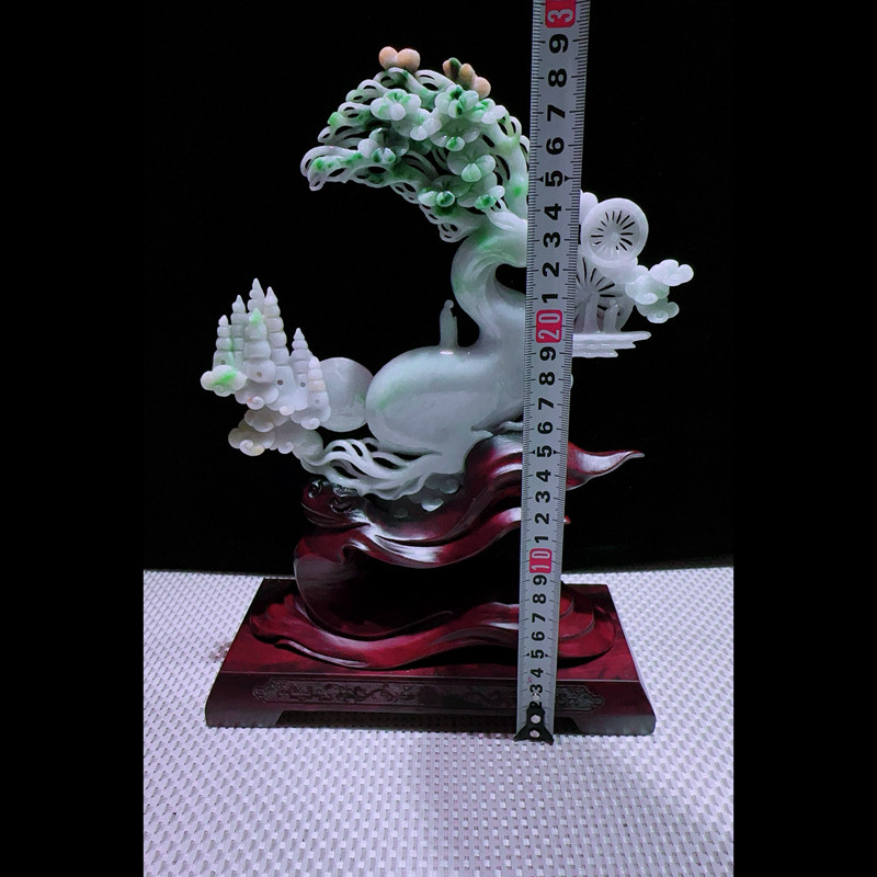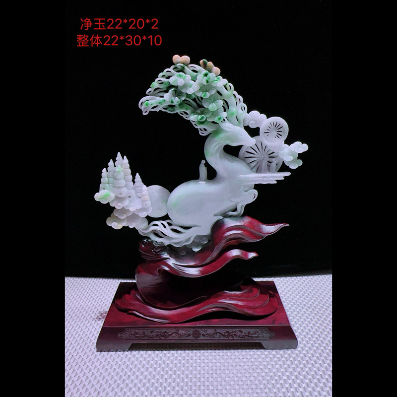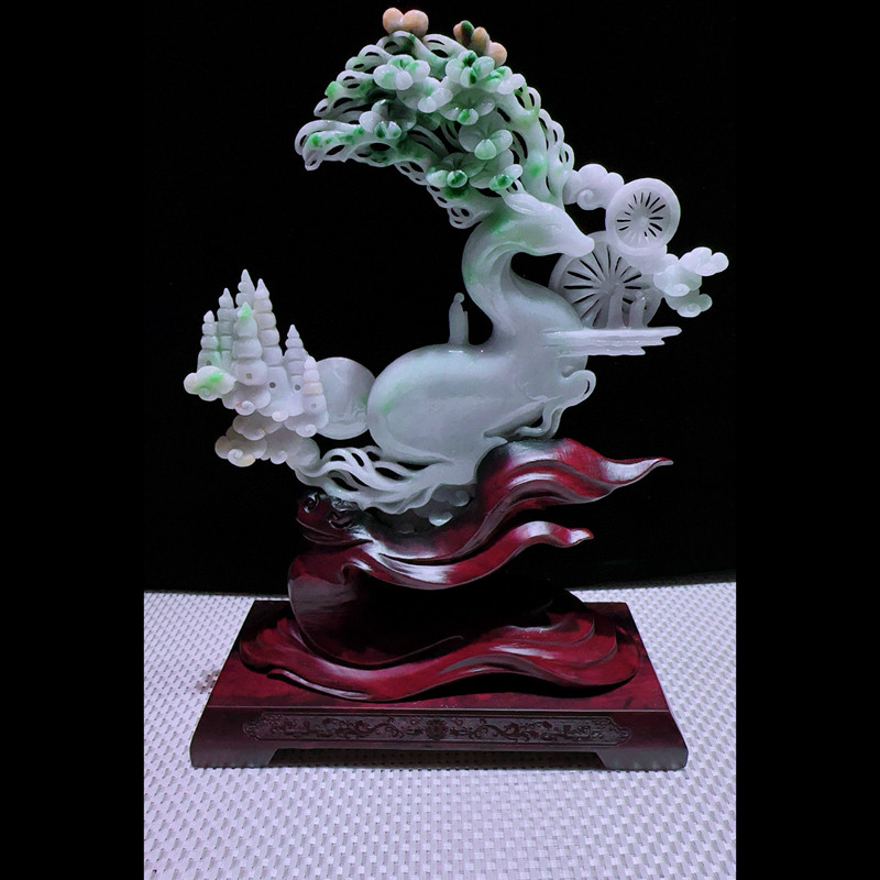 缅甸天然A货玉石翡翠孤品 精雕老坑双彩黄加绿飘绿鹿鸣蝉音摆件