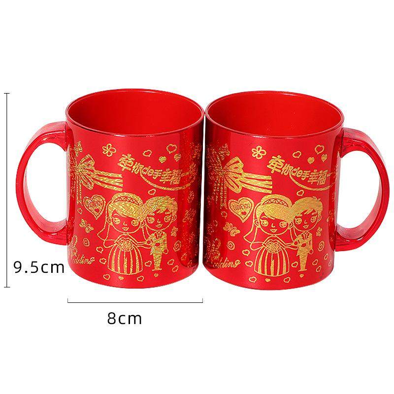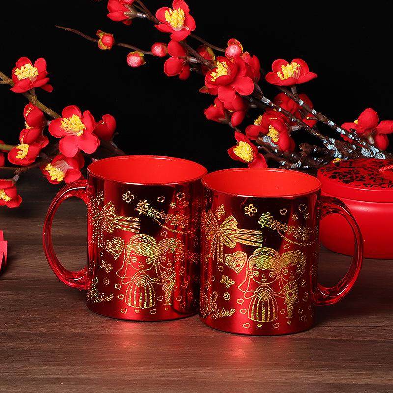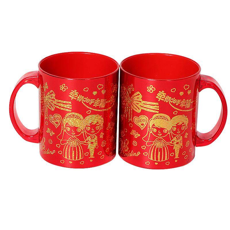 结婚漱口杯一对红色婚庆情侣塑料喜庆牙刷杯陪嫁婚庆新婚牙杯