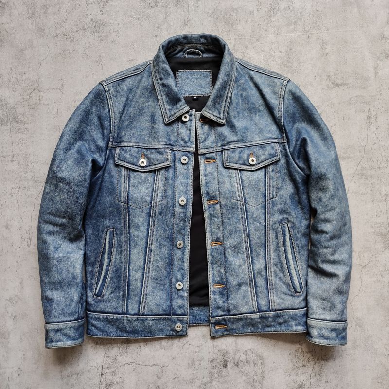复古做旧真皮皮衣男头层牛皮经典507工装牛仔纯皮夹克修身春秋潮