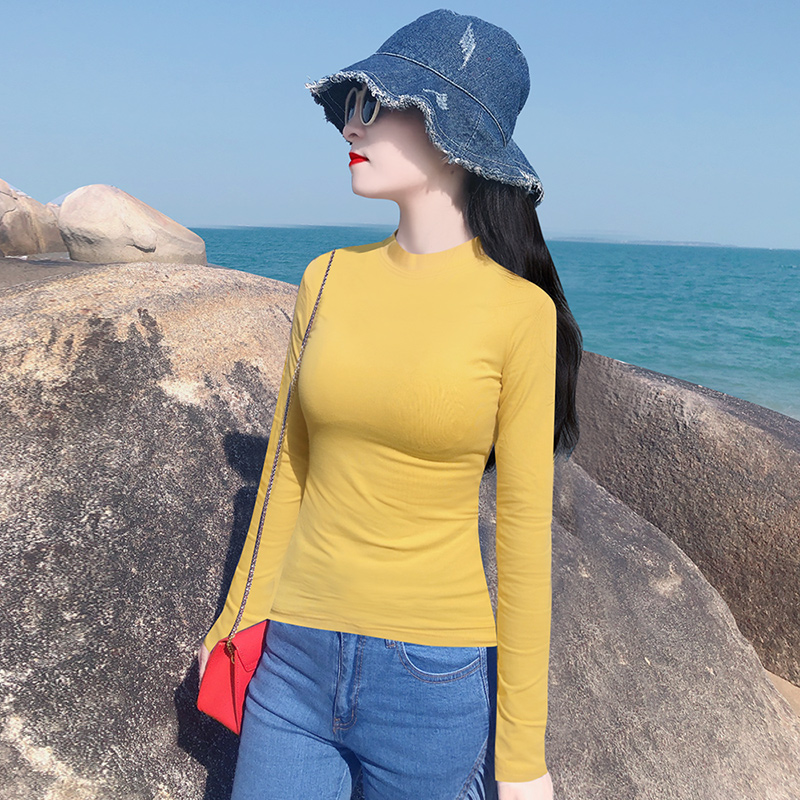 黑色半高领修身纯棉长袖T恤女