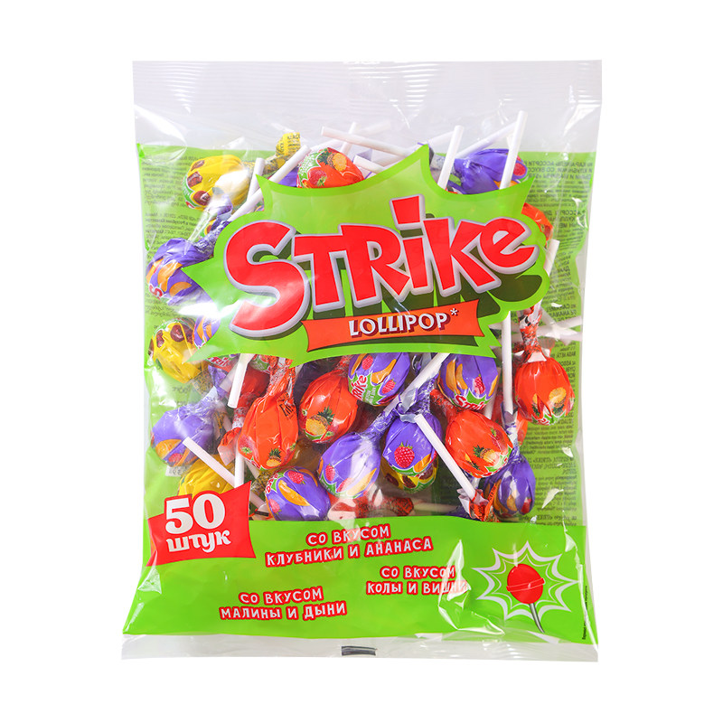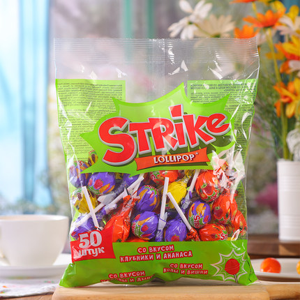 俄罗斯进口KDV混合水果味棒棒糖硬糖菠萝草莓可乐樱桃味糖果零食