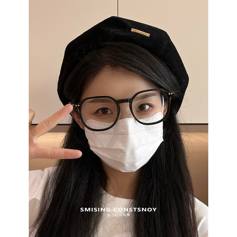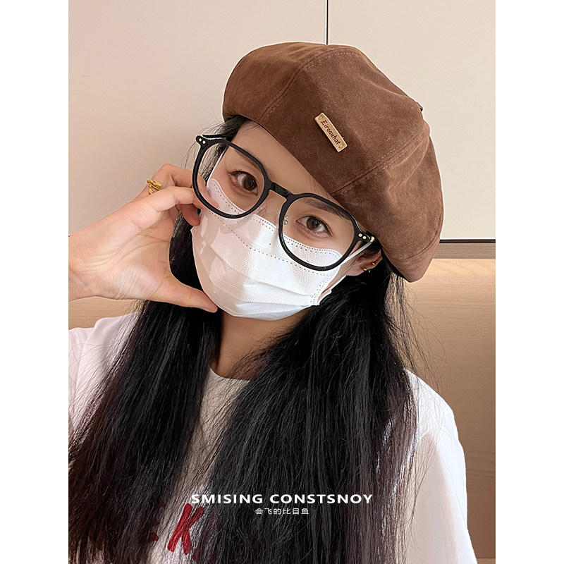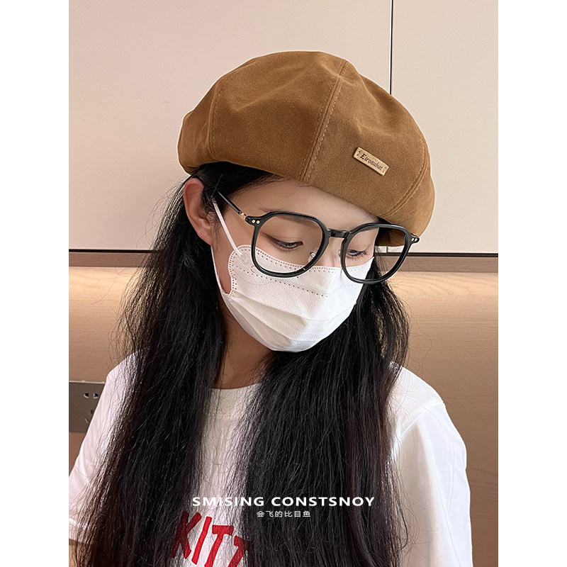 日系简约字母小标贝雷帽子女春季美拉德色系休闲百搭显脸小画家帽