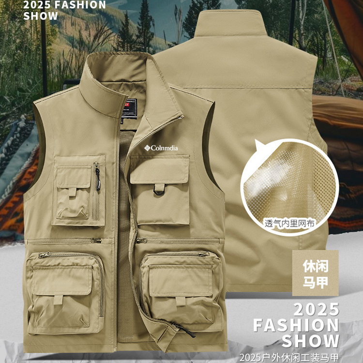 哥伦新款户外运动马甲男春秋款多口袋多功能立领钓鱼摄影休闲工装