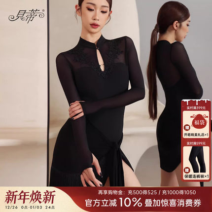 贝蒂拉丁舞新中式连体上衣2025新款练功服女长袖刺绣贴花舞衣BD73