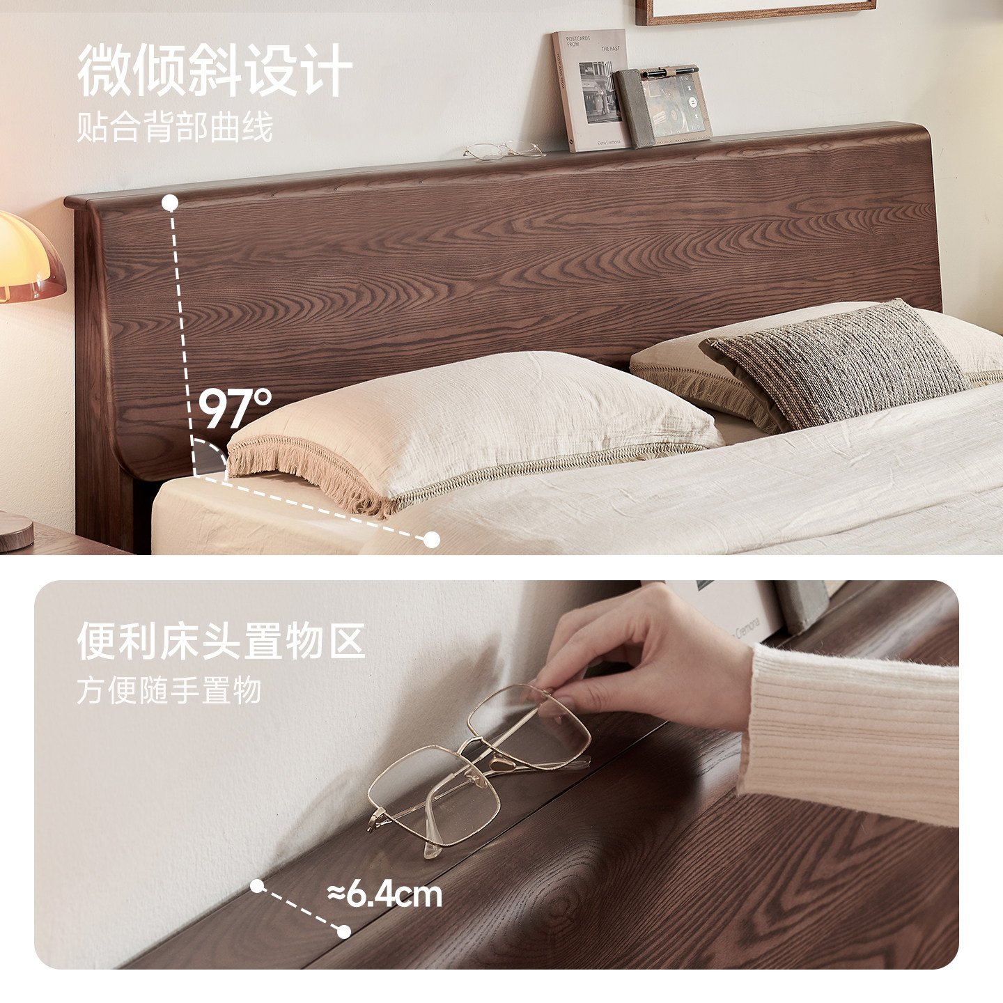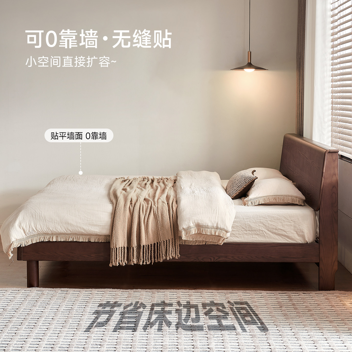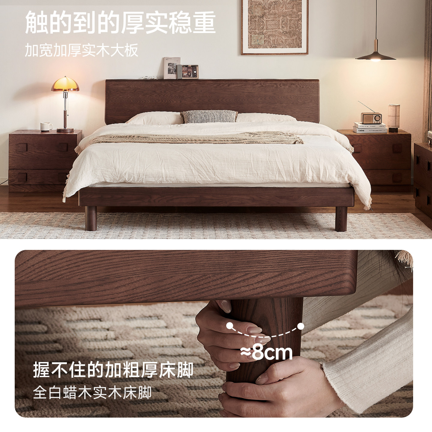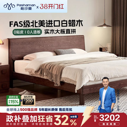 帕沙曼实木床1米8双人床白蜡木全实木床架中古风床卧室床政府补贴