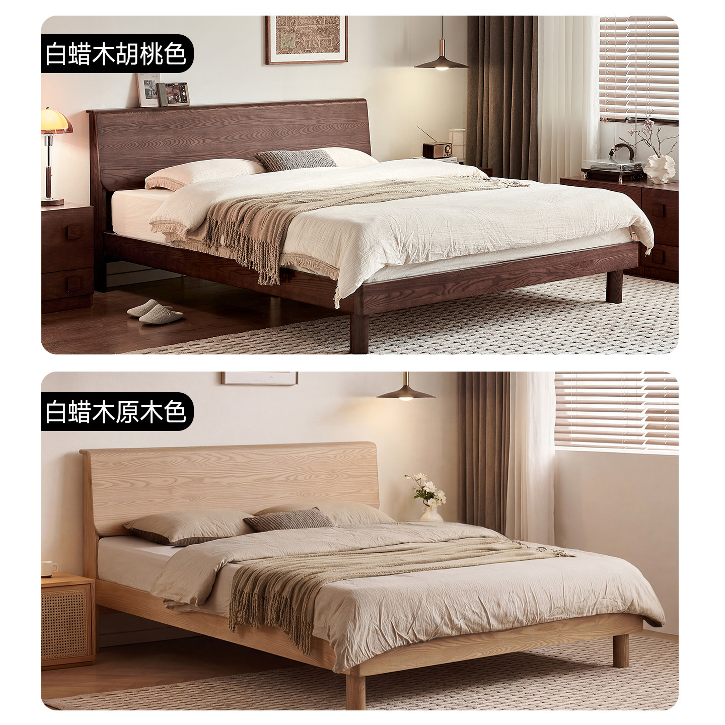 帕沙曼白蜡木全实木大板床原木床