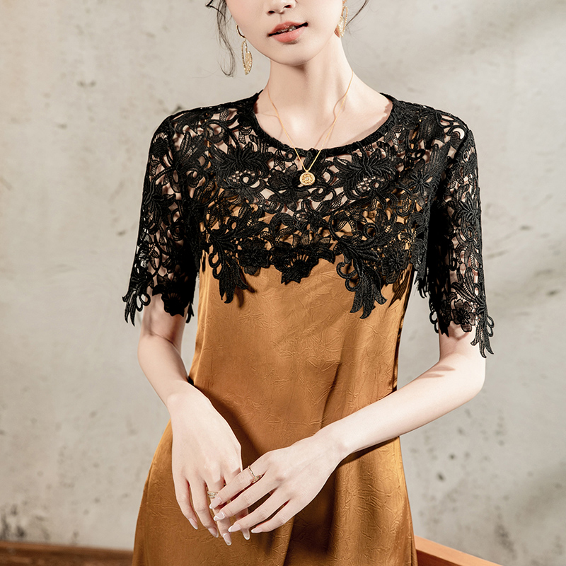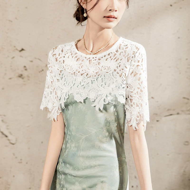 镂空蕾丝外搭短款衬衫宽松2025秋季新款花边下摆女装中袖纽扣上衣