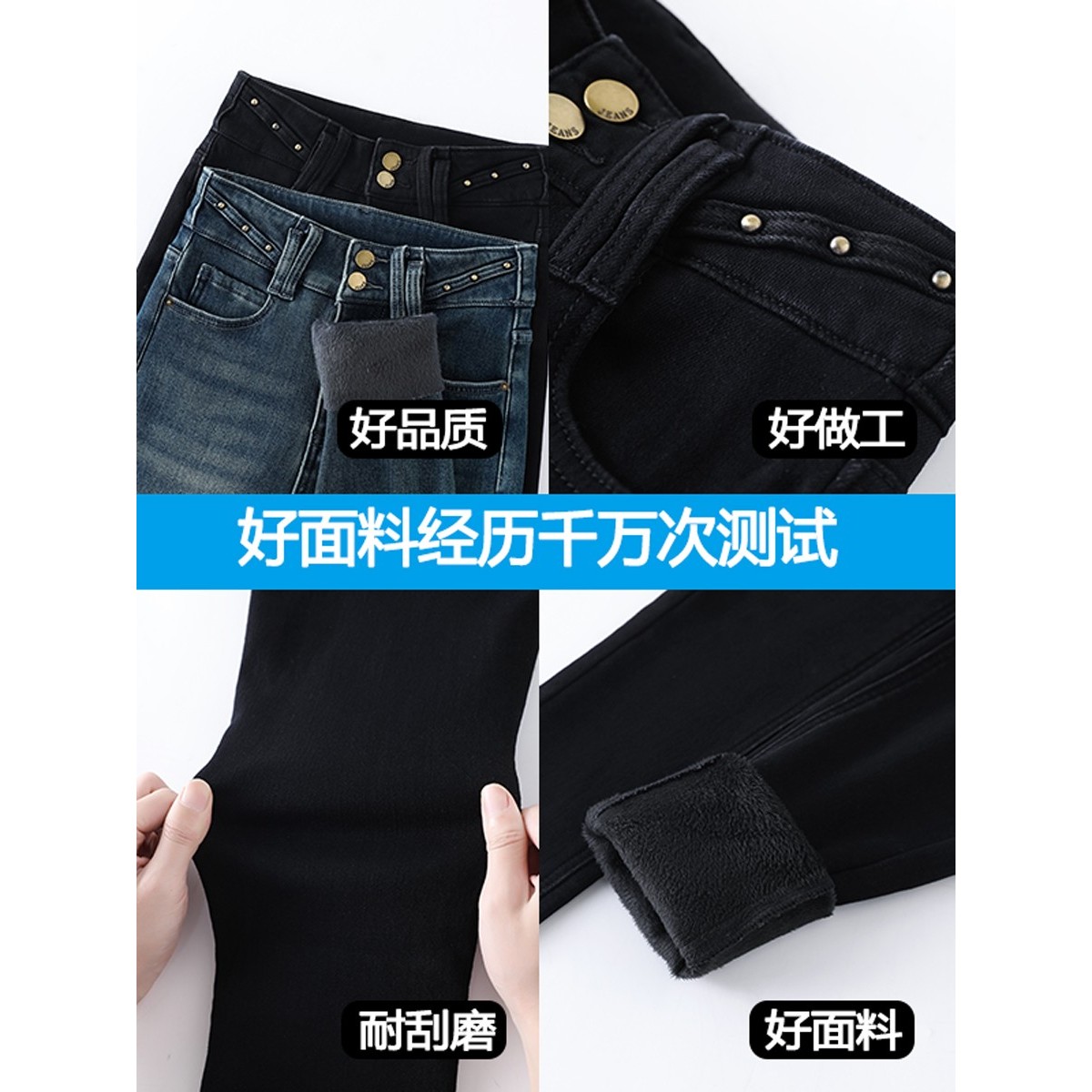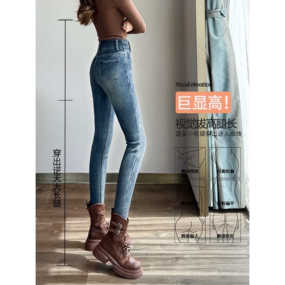 加绒加长版小脚牛仔裤女高个子2025新款秋冬紧身显瘦弹力铅笔靴裤