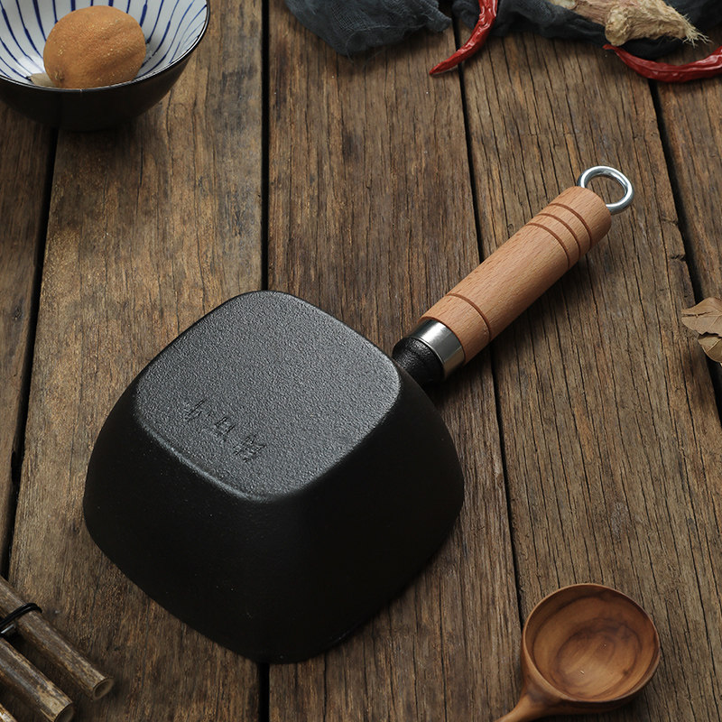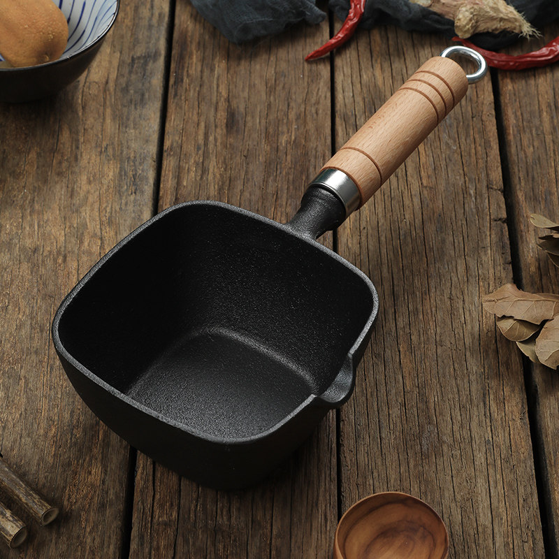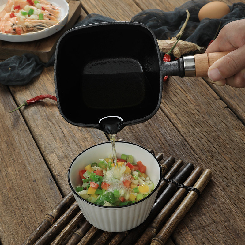 方形铸铁泼油小锅无涂层家用热油专用神器电磁灶燃气用迷你淋油锅