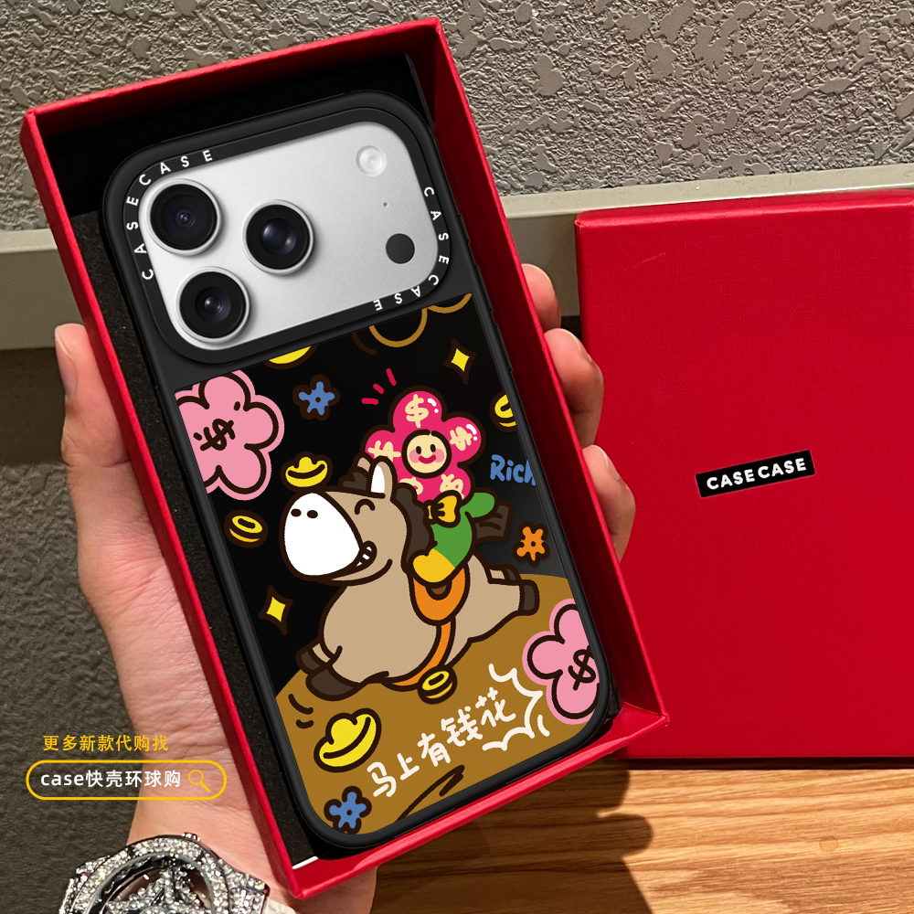 马上有钱花笑脸花朵适用iphone17promax手机壳16pro苹果15磁吸MagSafe镜面14plus趣味13卡通12情侣Air马年