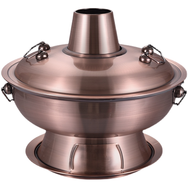 不锈钢仿铜老北京木炭火锅鸳鸯锅