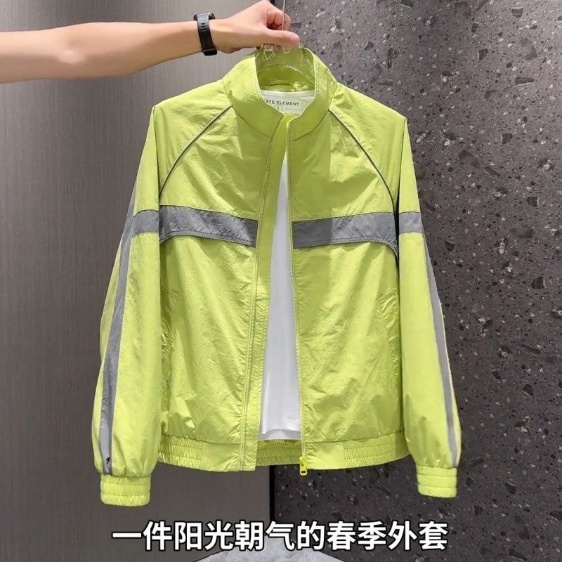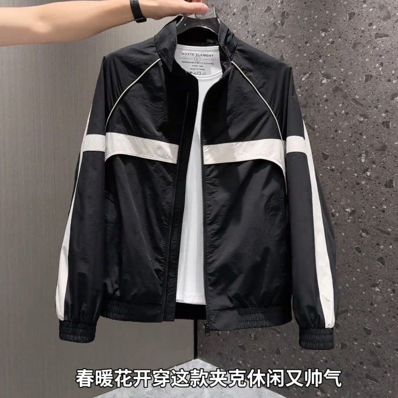 2025春季新款薄款立领夹克男士拼色轻奢外套潮牌撞色宽松帅气上衣