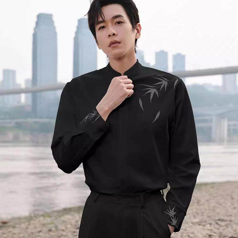 2025明星同款春秋季立领刺绣白色长袖衬衣中国风内搭打底衬衫潮