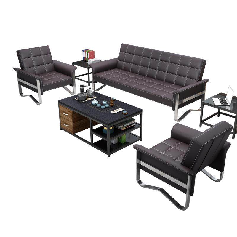 办公室沙发铁艺简约现代三人位沙发床会客商务接待室茶几组合套装