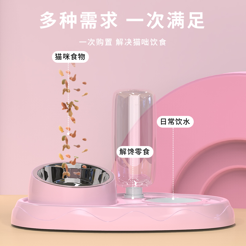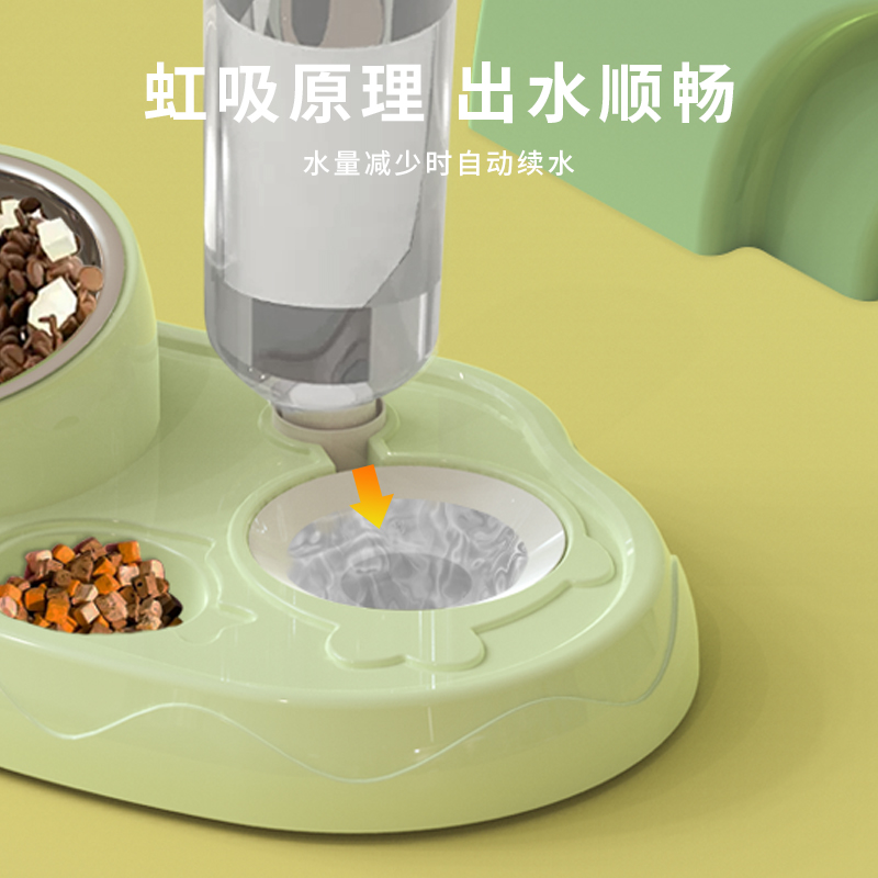 猫碗狗碗猫粮食盆双碗自动饮水斜口饭盆水碗一体保护颈椎宠物用品