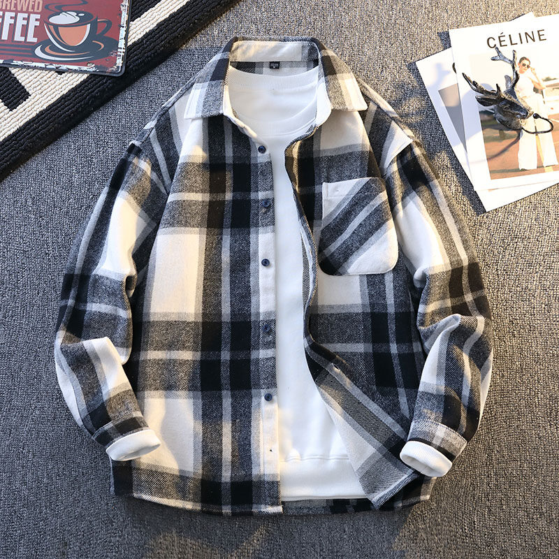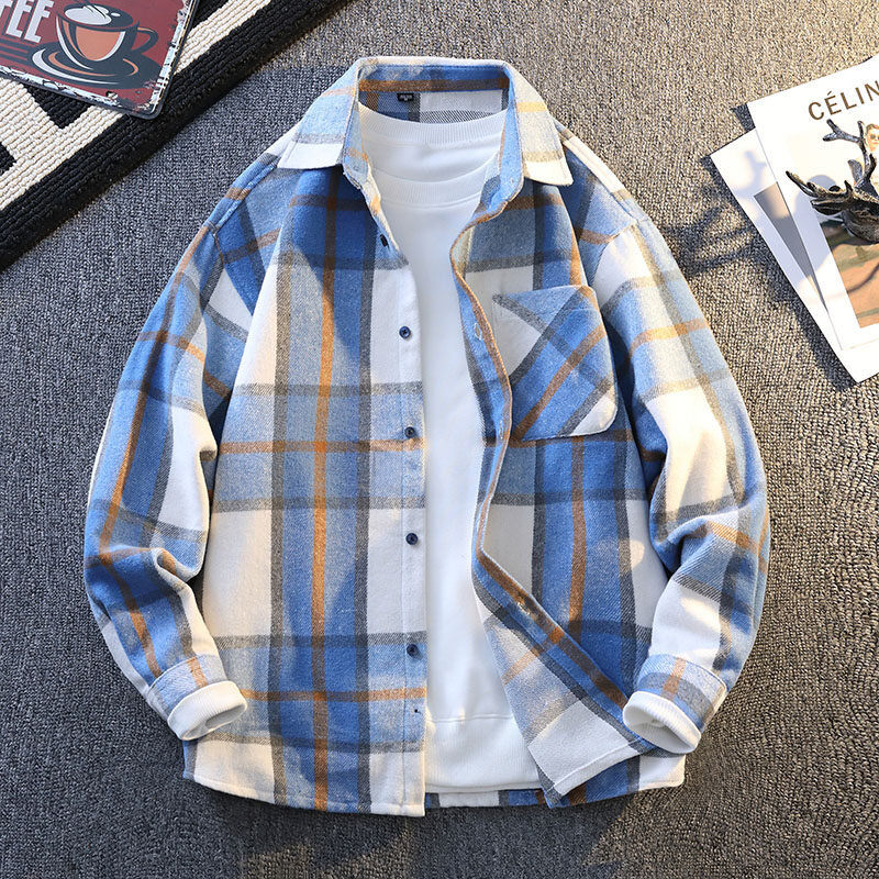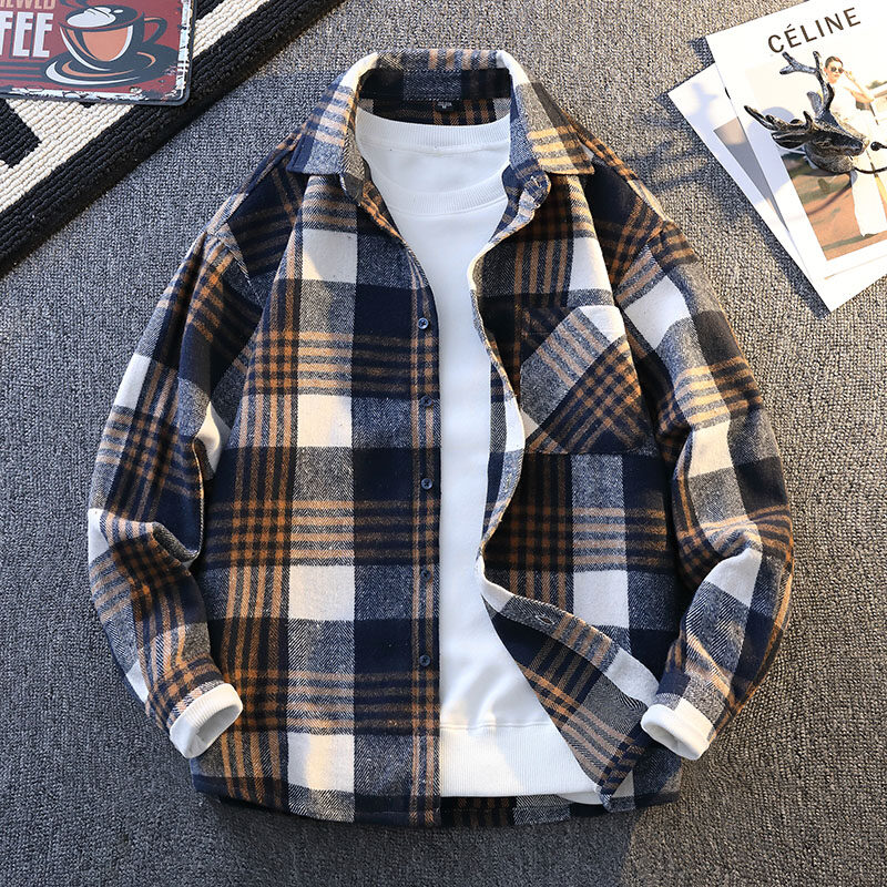 唐狮集团DESSO男士春夏季2025复古格子新款休闲百搭长袖宽松衬衫