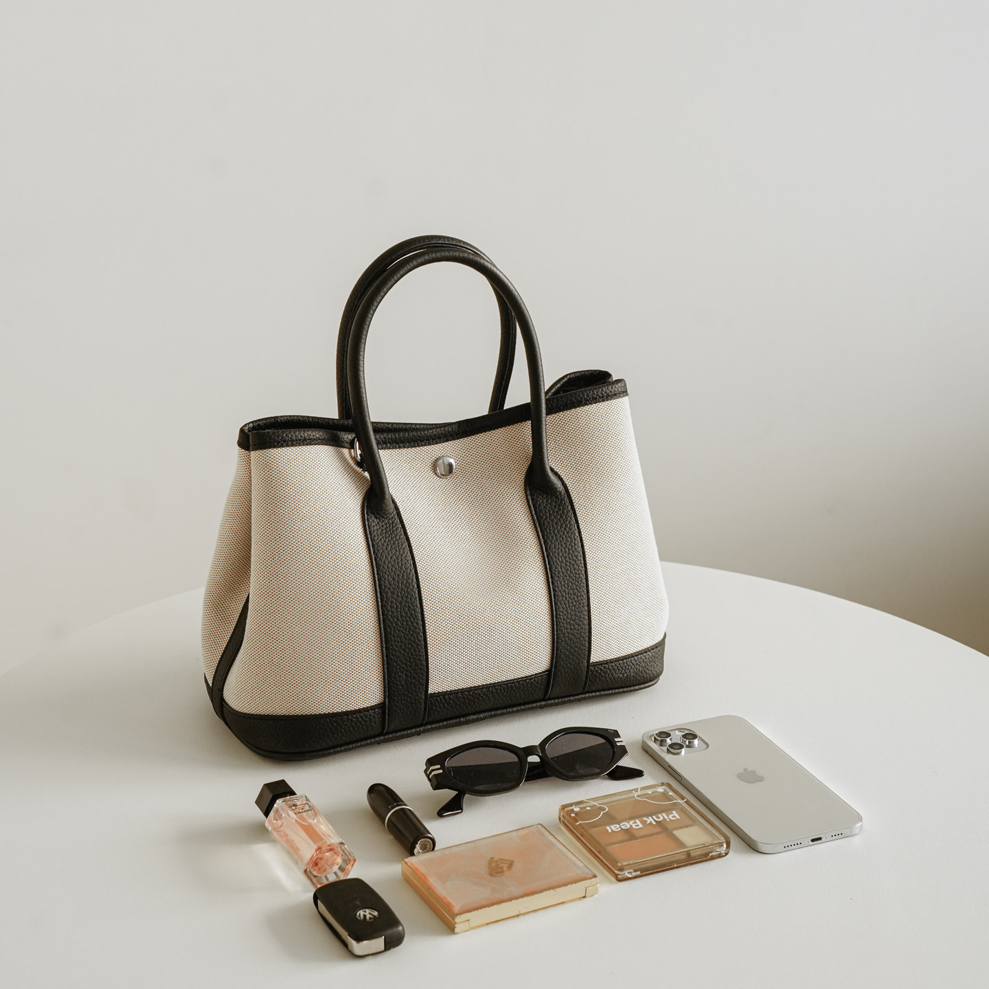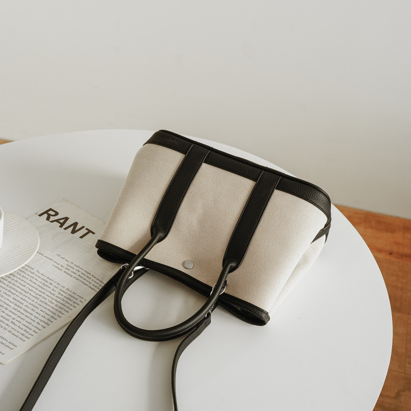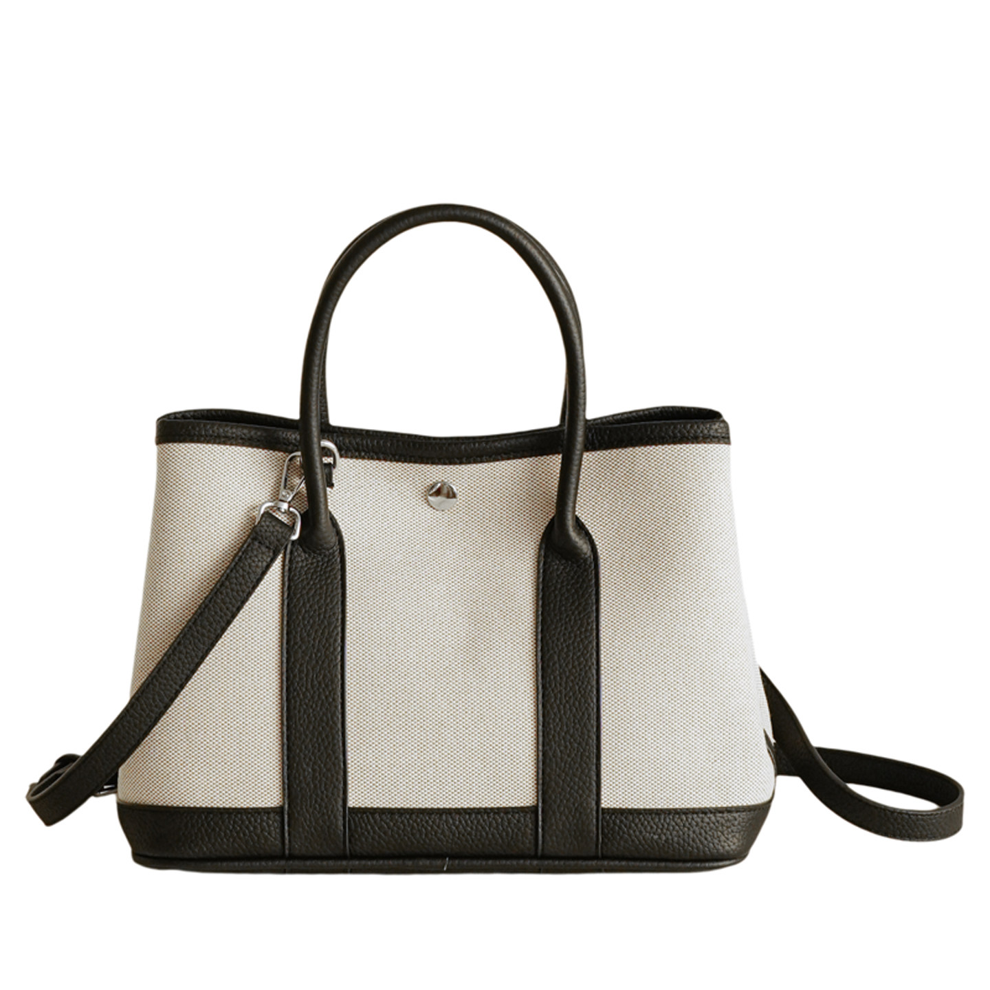 大容量经典熊猫色花园包帆布拼皮