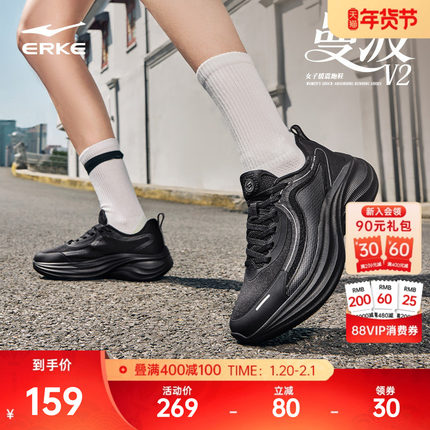 鸿星尔克曼波V2女跑步鞋冬季黑色女鞋减震轻便运动鞋软底增高鞋子