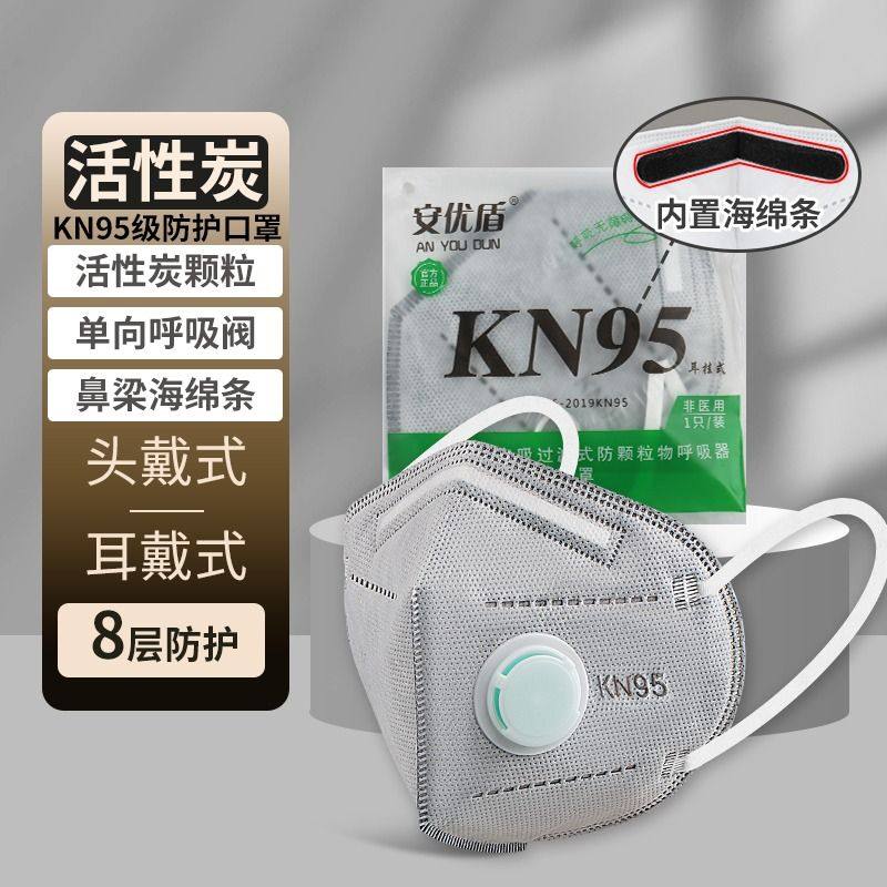 正品kn95口罩呼吸阀活性炭防尘工业粉尘甲醛雾霾电焊七层8层头戴