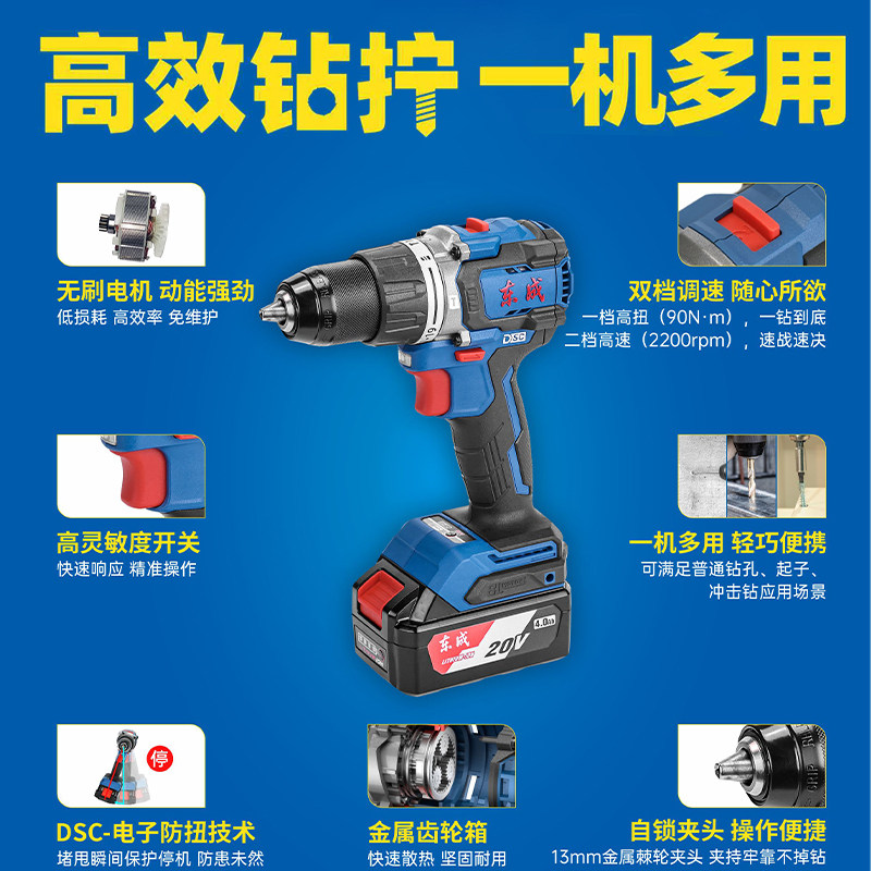 东成20V锂电充电式无刷冲击电钻DCJZ2090i家用多功能手电钻起子机