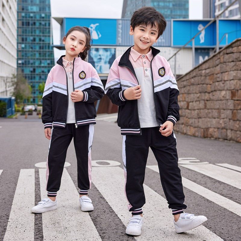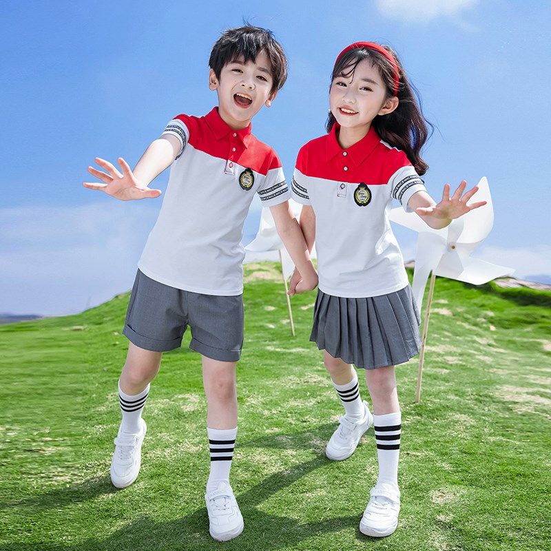 学院风校服夏季新款短袖短裤儿童粉色运动男女童班服套装幼儿园服