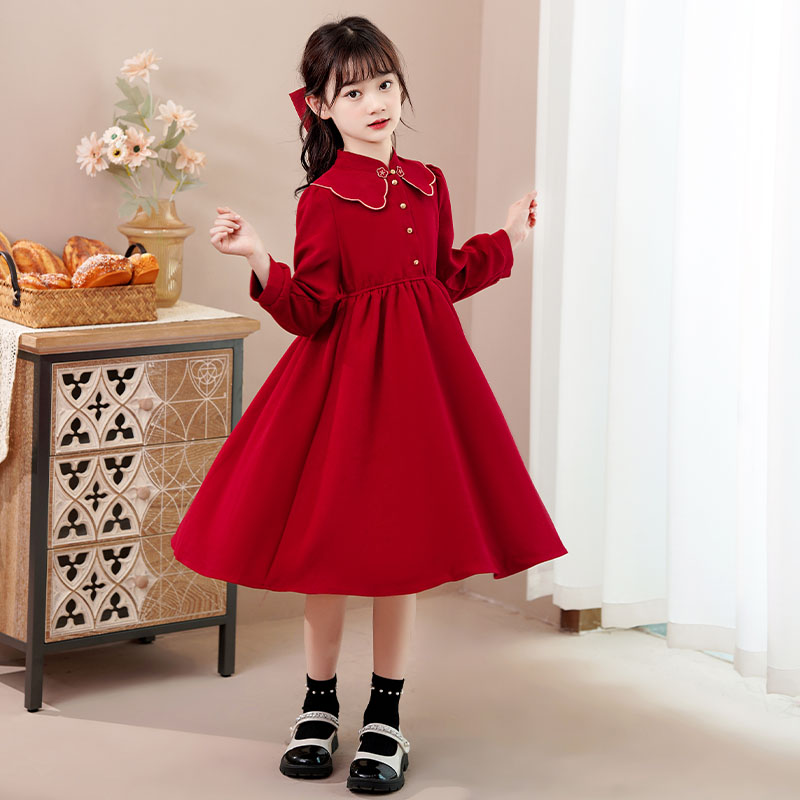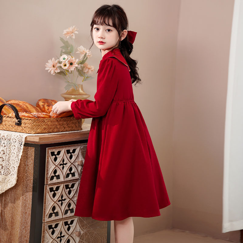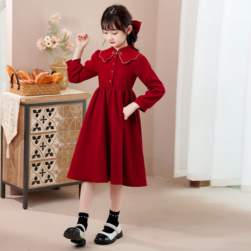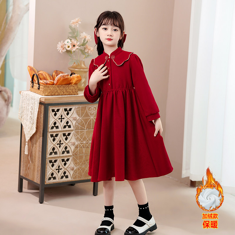 女童连衣裙新国风秋冬装新款复古娃娃领儿童裙子中大童女孩公主裙