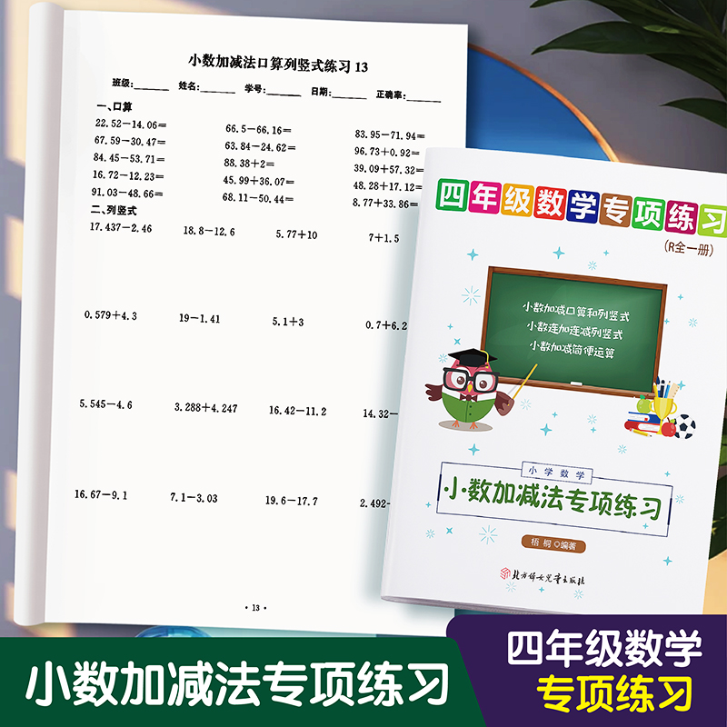 小学四年级数学上下册小数加减四则混合运算图形大数近似数面积计算两三位数乘除法竖式人教北师大专项练习