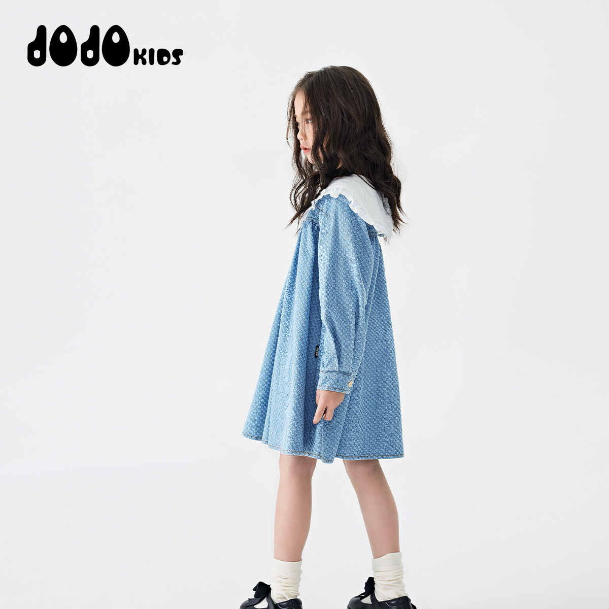 jojo童装女童秋季新款纯棉牛仔连衣裙中大童个性宽松洋气时髦裙酷