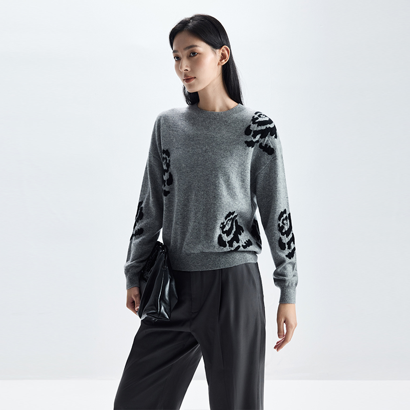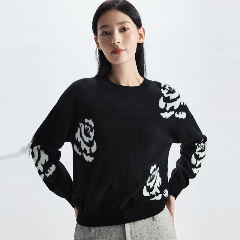 2025秋冬新款100%山羊绒衫女圆领套头针织衫宽松显瘦百搭毛衣上衣