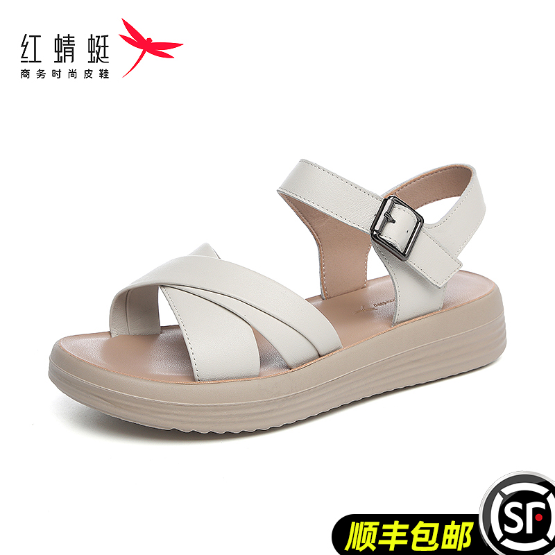 红蜻蜓凉鞋夏季2025年新款平底软底头层牛皮运动夏天鞋子沙滩女鞋