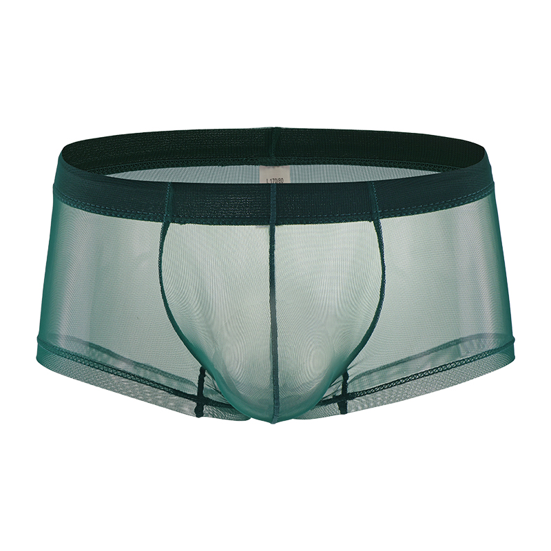 男生黑丝小平角裤网纱全透明内裤