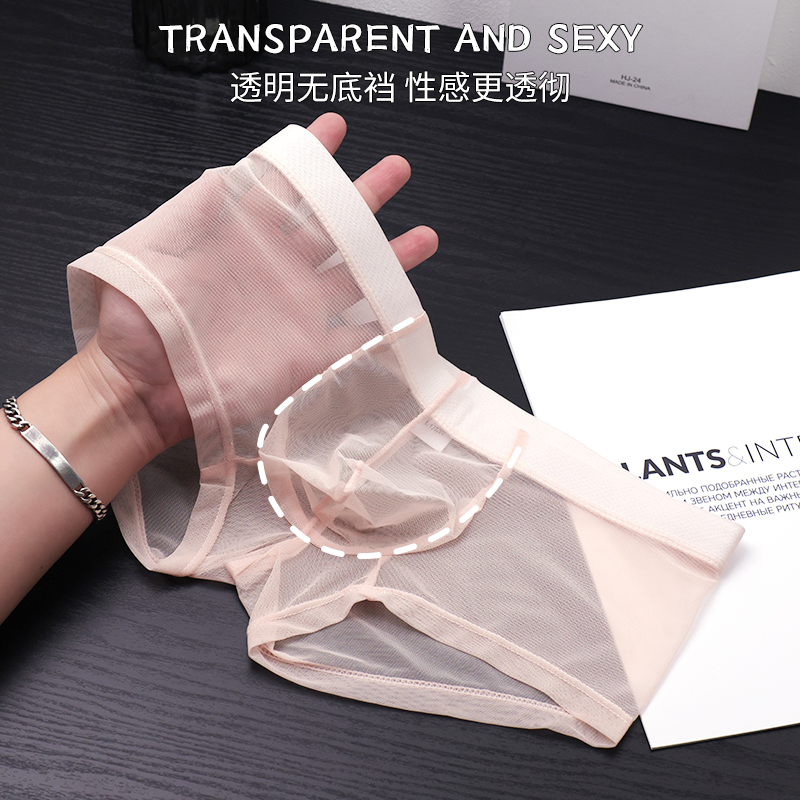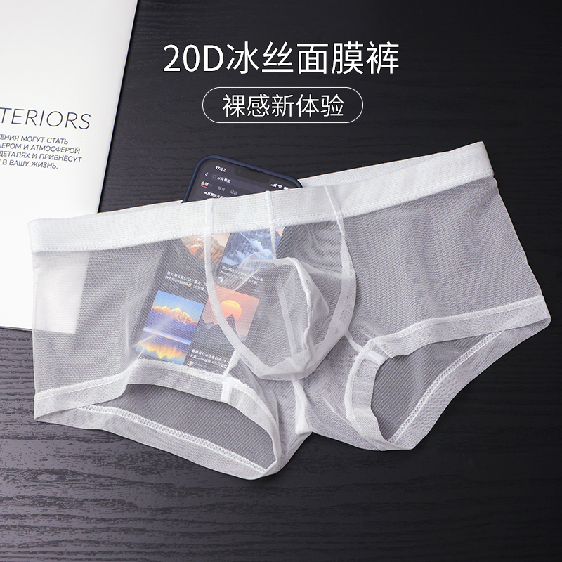 全透明性感男士小平角内裤冰丝无痕超薄U凸紧身男生黑丝四角裤衩