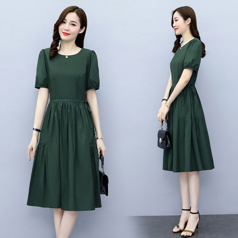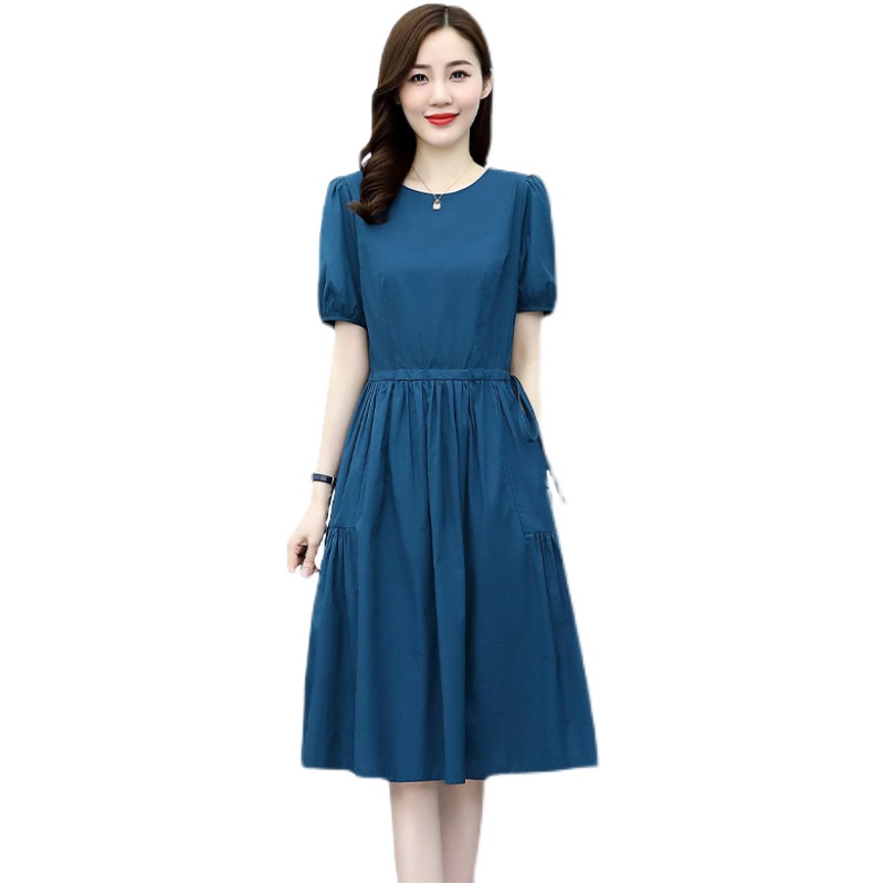 纯棉连衣裙女装2025新款夏季薄款小个子洋气减龄收腰显瘦遮肚裙子
