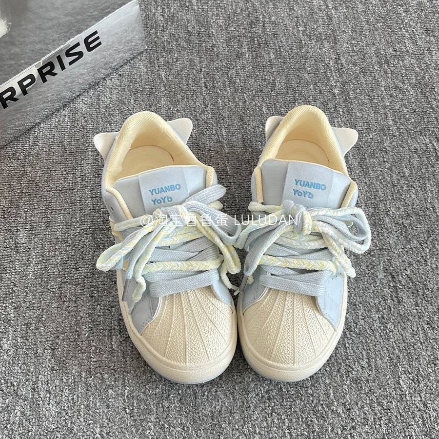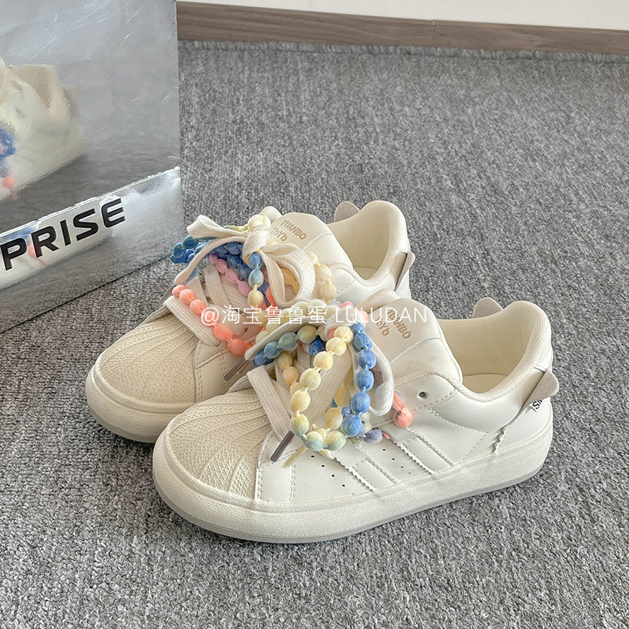 鲁鲁蛋 爆款板鞋女款2025新款春秋百搭鞋子学生厚底小白鞋贝壳鞋